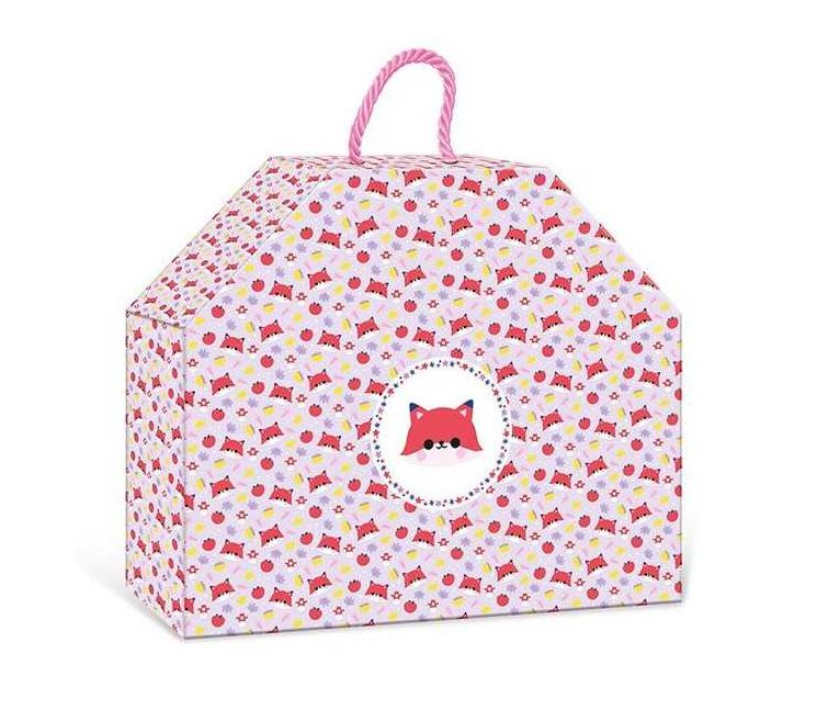 Une activité créative présentée dans une belle boite en forme de sac à main, imprimée avec de jolis motifs.