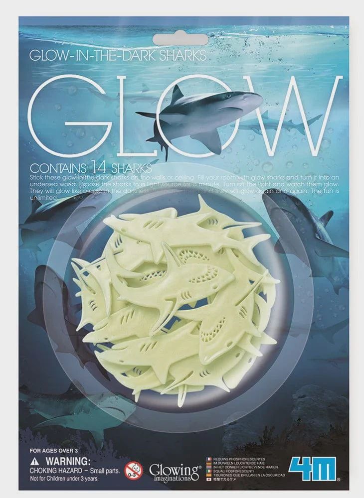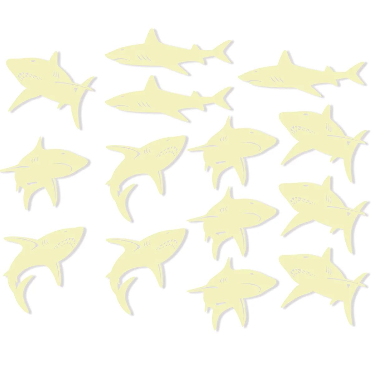 Contenu : 14 requins phosphorescents, des autocollants en mousse