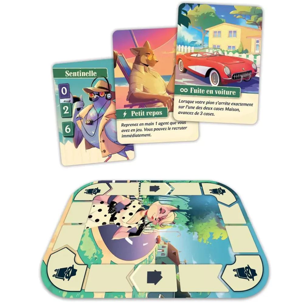 Agent Avenue est un jeu de cartes compétitif pour 2 joueurs qui combine le bluff, course et collection.