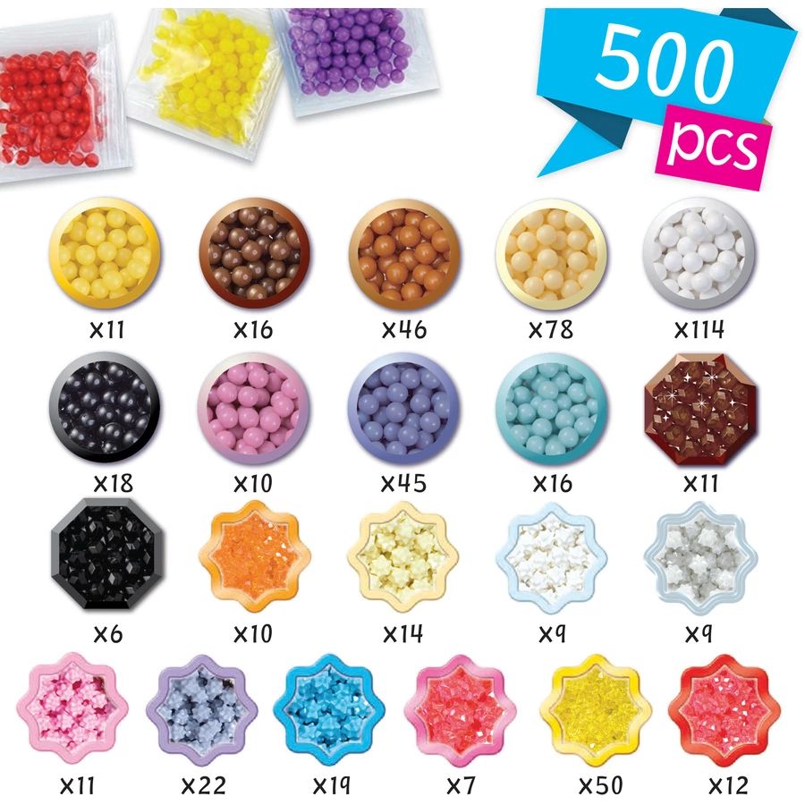 Contenu : 2 plateaux de présentation, 1x pulvérisateur, 1x feuille de gabarit avec instructions, des perles solides, des perles bijoux, des perles polygonales, des perles étoiles