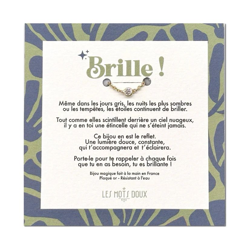 Tout comme les étoiles scintillent derrière un ciel nuageux, il y a en toi une étincelle qui ne s’éteint jamais. Ce bijou en est le reflet. Une lumière douce, constante qui t’accompagnera et t’éclairera.