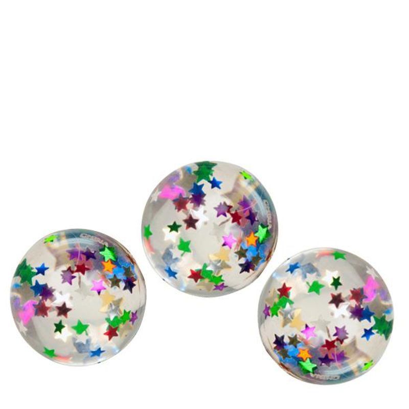 Une balle rebondissante amusante et colorée en caoutchouc avec un joli motif étoilé.