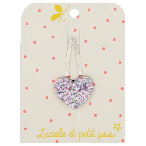 Cette adorable barrette est composée d'un cœur à paillettes cousu sur une pince clic clac. C'est l'accessoire idéal pour ajouter une touche tendance à la coiffure de votre enfant.