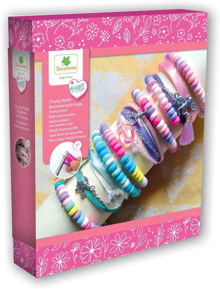 Dans cette jolie boîte de la marque Sycomore, vous trouverez tout le matériel nécessaire à la réalisation de nombreux bracelets colorés.