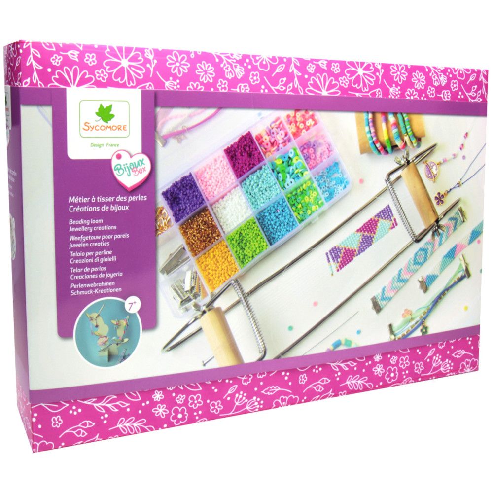Découvre ce coffret métier à tisser de chez Sycomore, il contient tout ce dont vous avez besoin pour créer vos propres bijoux.