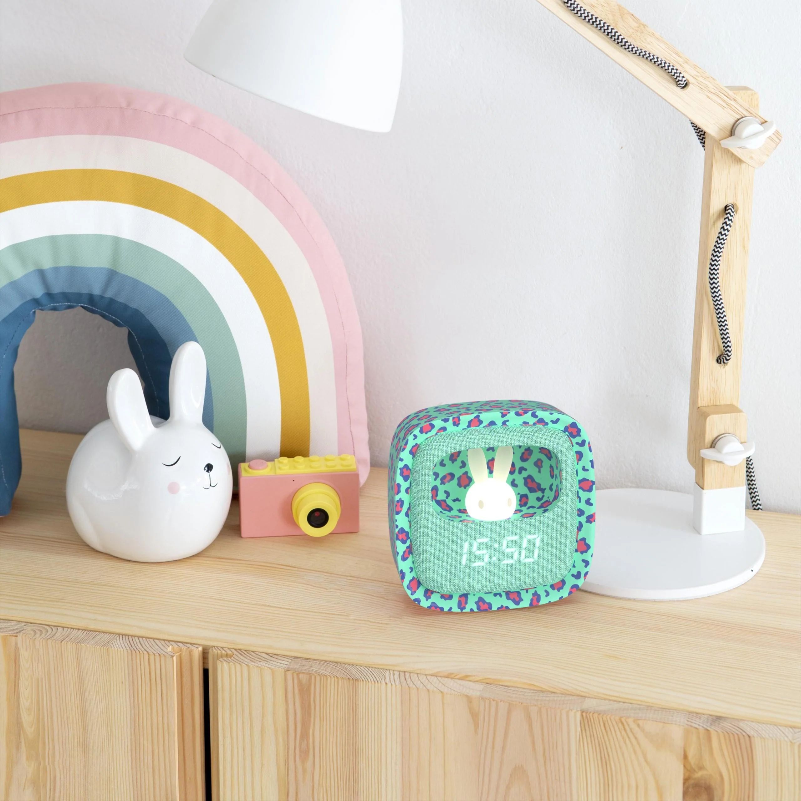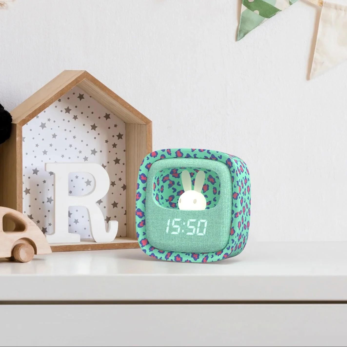 Vous pourrez programmer l'heure, la date et deux alarmes. Le réveil Billy veillera sur vos enfants grâce à sa veilleuse intégrée dans le petit lapin souple en silicone. La luminosité est réglable via un bouton tactile sur le réveil, très simple à utiliser.
