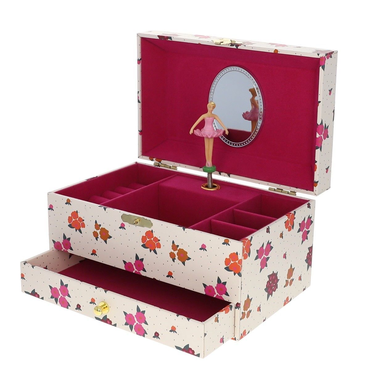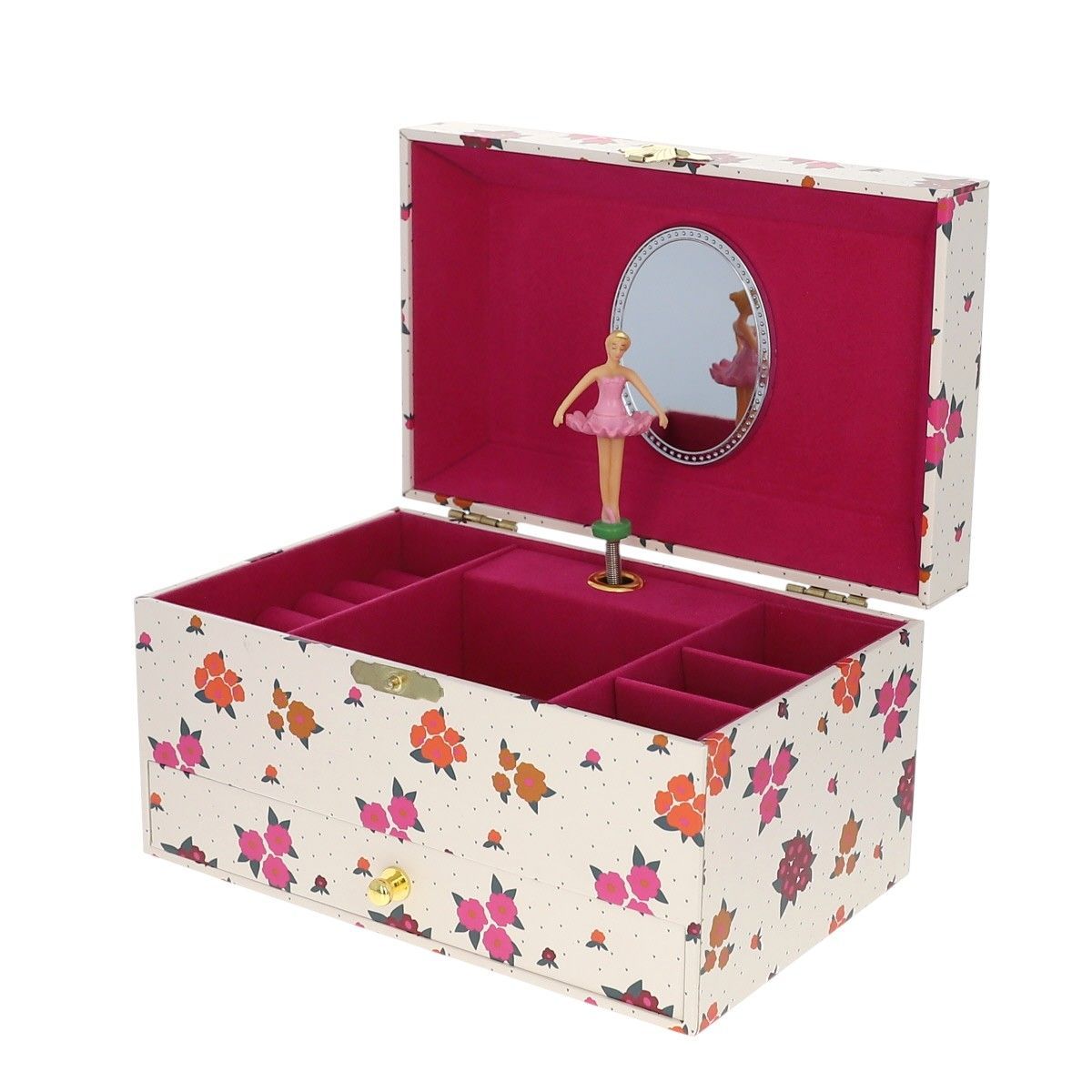 Cette magnifique boîte à bijoux musicale est l'accessoire idéal pour ranger les bijoux et les petits secrets ! Vous allez craquer pour son joli imprimé à fleurs roses plein de douceur et de couleurs.