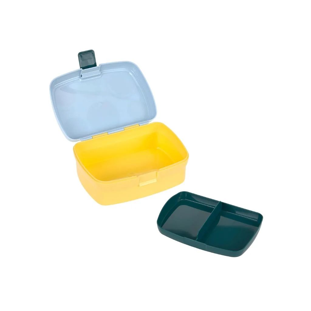 Cette boîte à tartines est équipée d'un compartiment amovible permettant de séparer les différentes collations. Elle est robuste et facile à ouvrir et à fermer, ce qui la rend pratique d'utilisation pour les enfants.