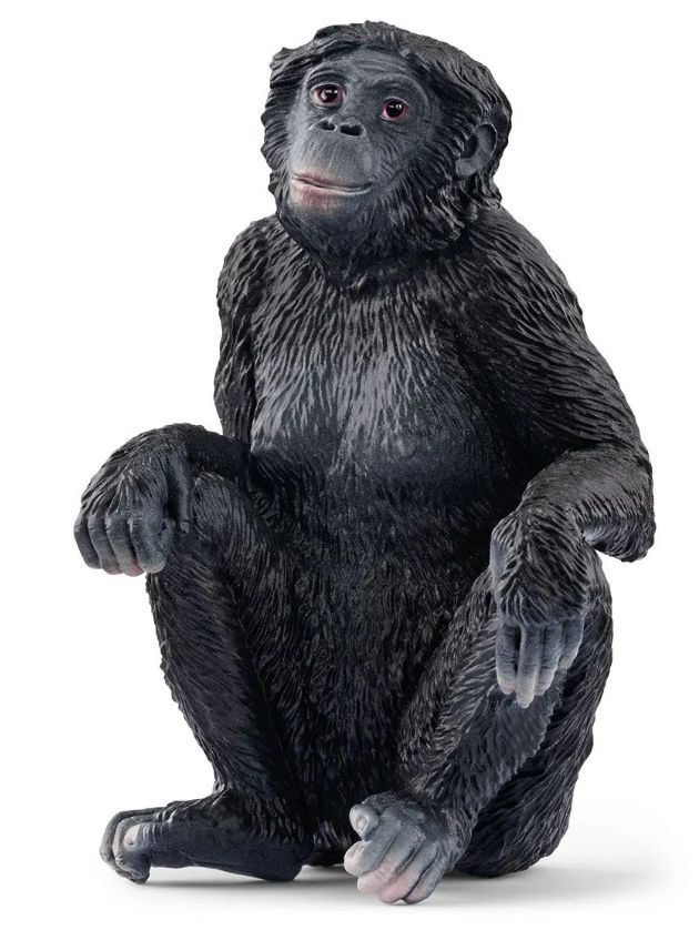 La femelle bonobo ressemble beaucoup à un chimpanzé. Cela n'a rien d'étonnant, car les deux espèces appartiennent à la même famille. Les connaisseurs reconnaissent le bonobo à ses lèvres roses et à sa raie marquée. Cette raie va plutôt bien à cette femelle bonobo, tu ne trouves pas ?