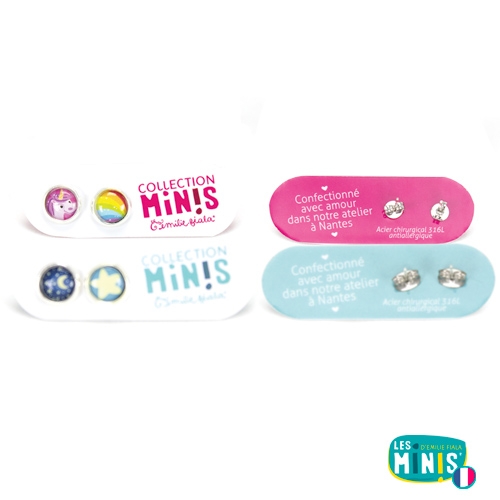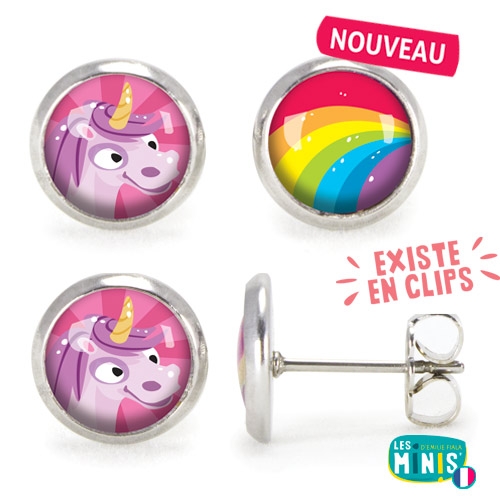 Boucles d'oreille tiges Les Minis - Licorne / Arc-en-ciel