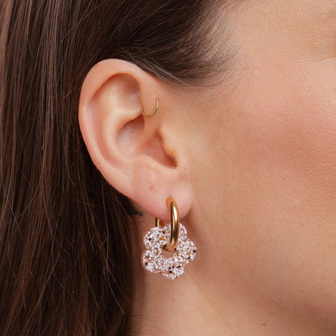 Les Créoles Fleur Ivoire Champagne allient subtilement les tons ivoire et champagne, offrant un bijou lumineux, élégant et facile à assortir. Votre accessoire indispensable de l'été !