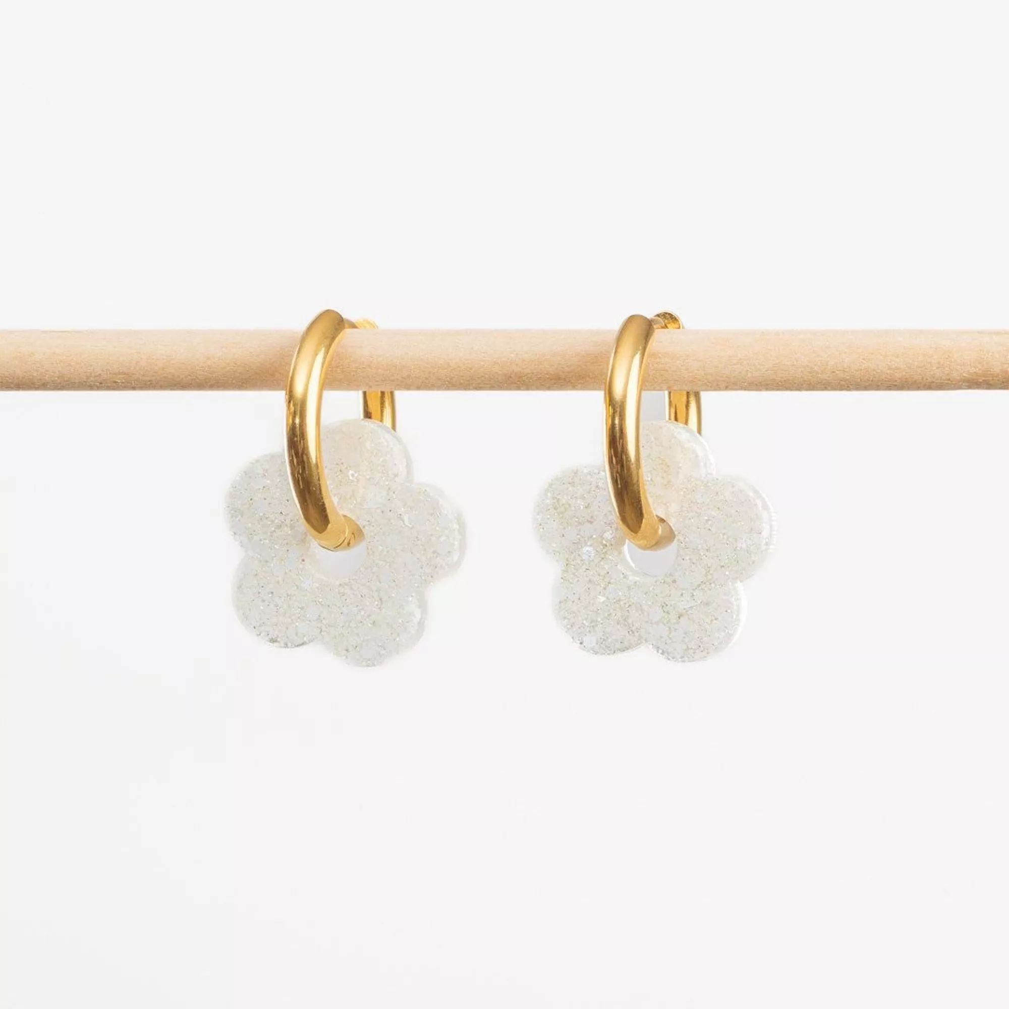 Les Créoles Fleur Ivoire aux tons ivoire, offre un bijou lumineux, élégant et facile à assortir. Votre accessoire indispensable de l'été !