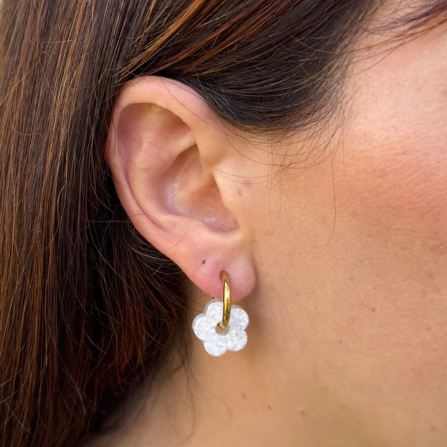 Les Créoles Fleur Ivoire aux tons ivoire, offre un bijou lumineux, élégant et facile à assortir. Votre accessoire indispensable de l'été !