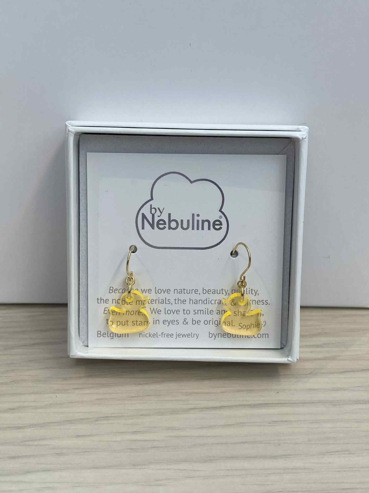 Boucles d'oreilles pendantes or et plexiglas - Canard