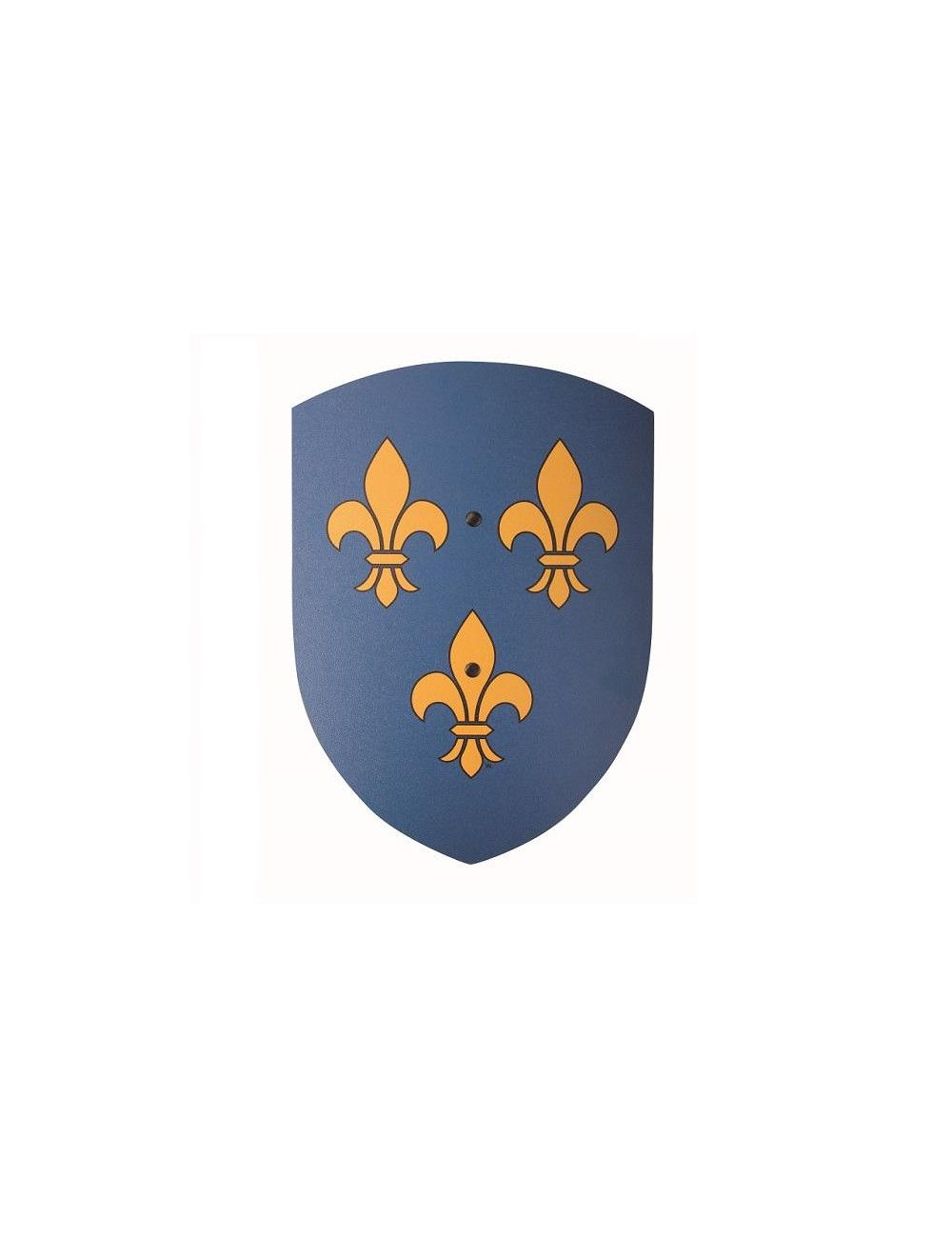 Ce magnifique bouclier en bois de de la marque Vah est l'accessoire indispensable pour tous les enfants qui rêvent de jouer aux chevaliers ! Le bouclier en bois Fleur de Lys arbore trois grands symboles royaux jaunes sur un fond bleu. Ce bouclier avec des couleurs et des dessins profonds, courbé comme à l'origine grâce à une technique spéciale, sera parfait pour accompagner les aventures de votre chevalier en herbe.