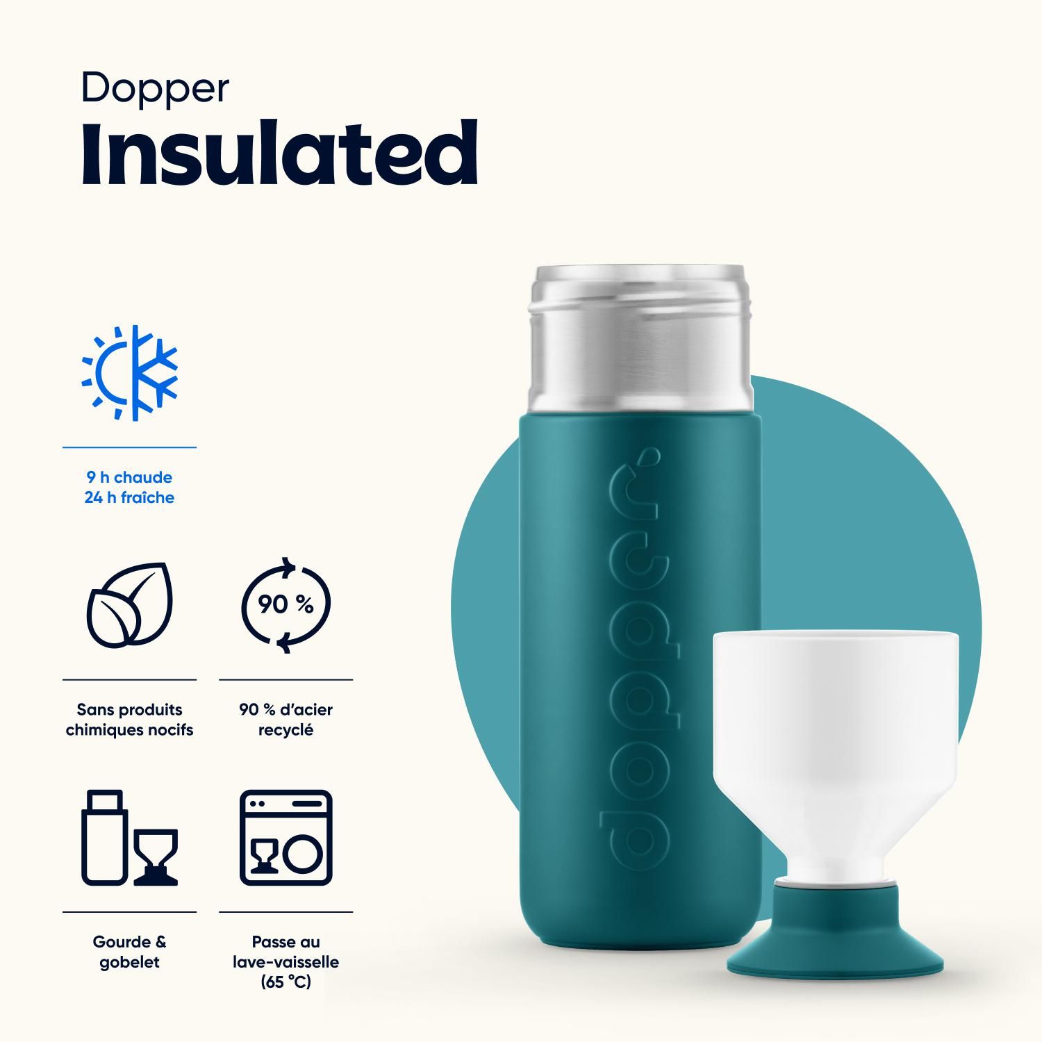 Les gourdes Dopper sont les bouteilles réutilisables les plus durables au monde! Sauvez les océans à chaque gorgée, toute l'année ! Dopper s'engage à reverser un minimum du chiffre d'affaire à des projets permettant un accès universel à l'eau potable.