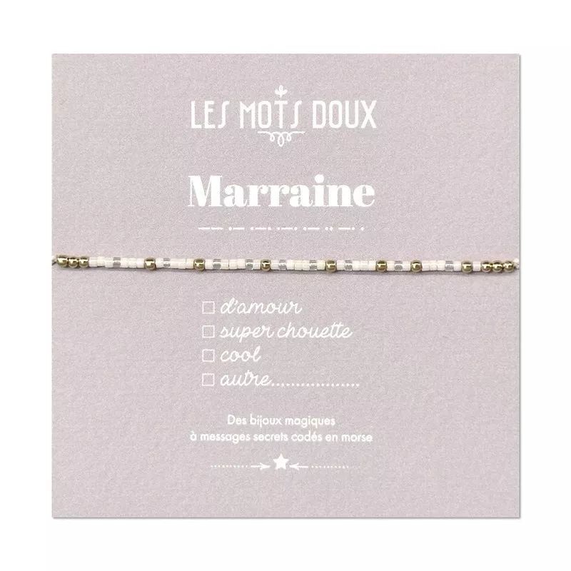 Bracelet codé morse - Marraine blanc irrisé/or