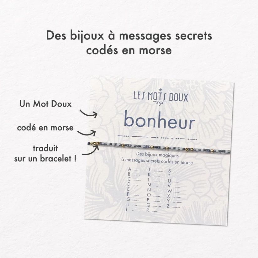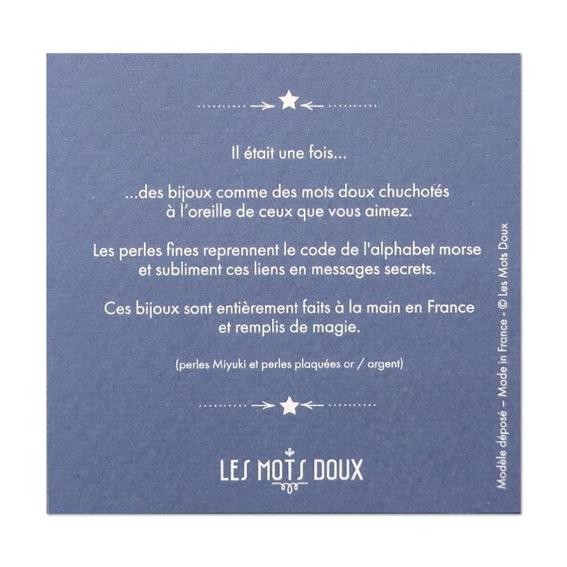 Les perles reprennent le code de l’alphabet morse pour traduire un message secret dont vous seule connaissez la signification.