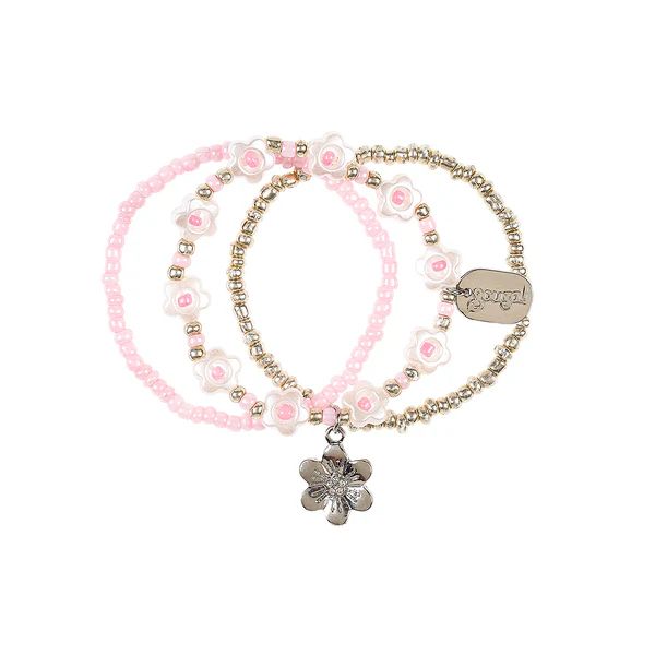 Ajoutez une touche de charme avec le bracelet Suus, ce bijou se compose de trois bracelets distincts : des perles roses douces, des perles argentées scintillantes et un délicat motif floral blanc nacré. Un pendentif fleur en argent complète l'ensemble, en faisant un accessoire élégant pour toutes vos tenues.