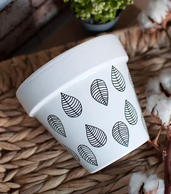 Composition : pot en terre cuite, peinture acrylique, vernis marin
