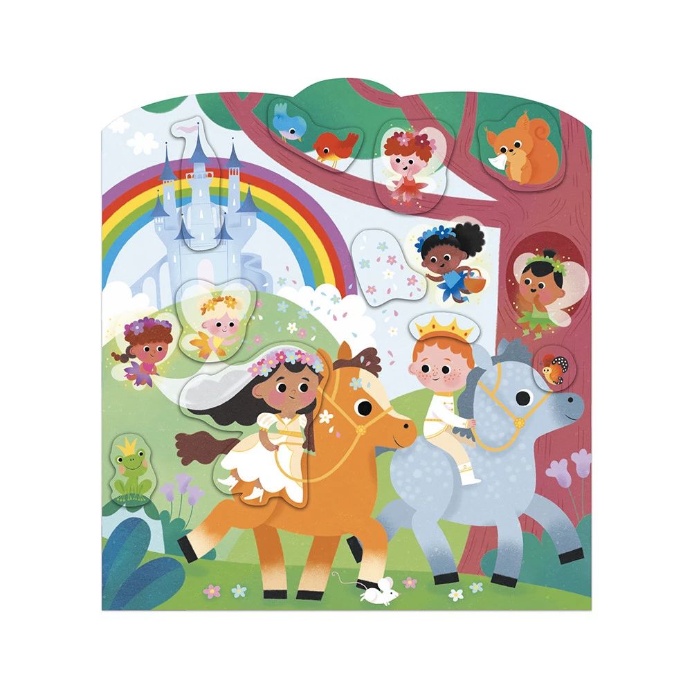 Il contient 7 scènes où vivent les licornes, les princes, les princesses et les fées, ainsi que 8 pages d’autocollants agrafées !