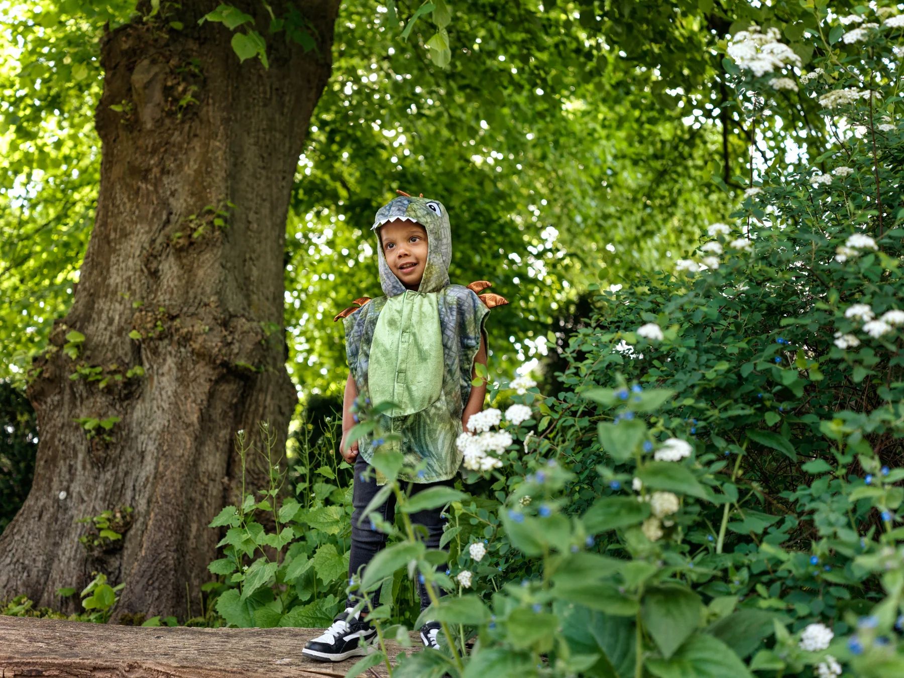 La plupart des dinosaures sont dangereux, mais ce petit T-Rex ? C'est la créature la plus mignonne qui soit ! Cape de T-rex avec fermetures velcro de chez Souza.