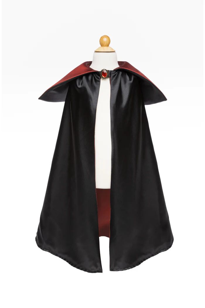 Une cape de vampire qui incarne l'élégance et le mystère pour votre petit vagabond nocturne ! Fabriquée en tissu noir luxueux et doublée de satin rouge sang, cette cape au col distinctif est l'accessoire idéal pour se transformer instantanément en redoutable vampire.