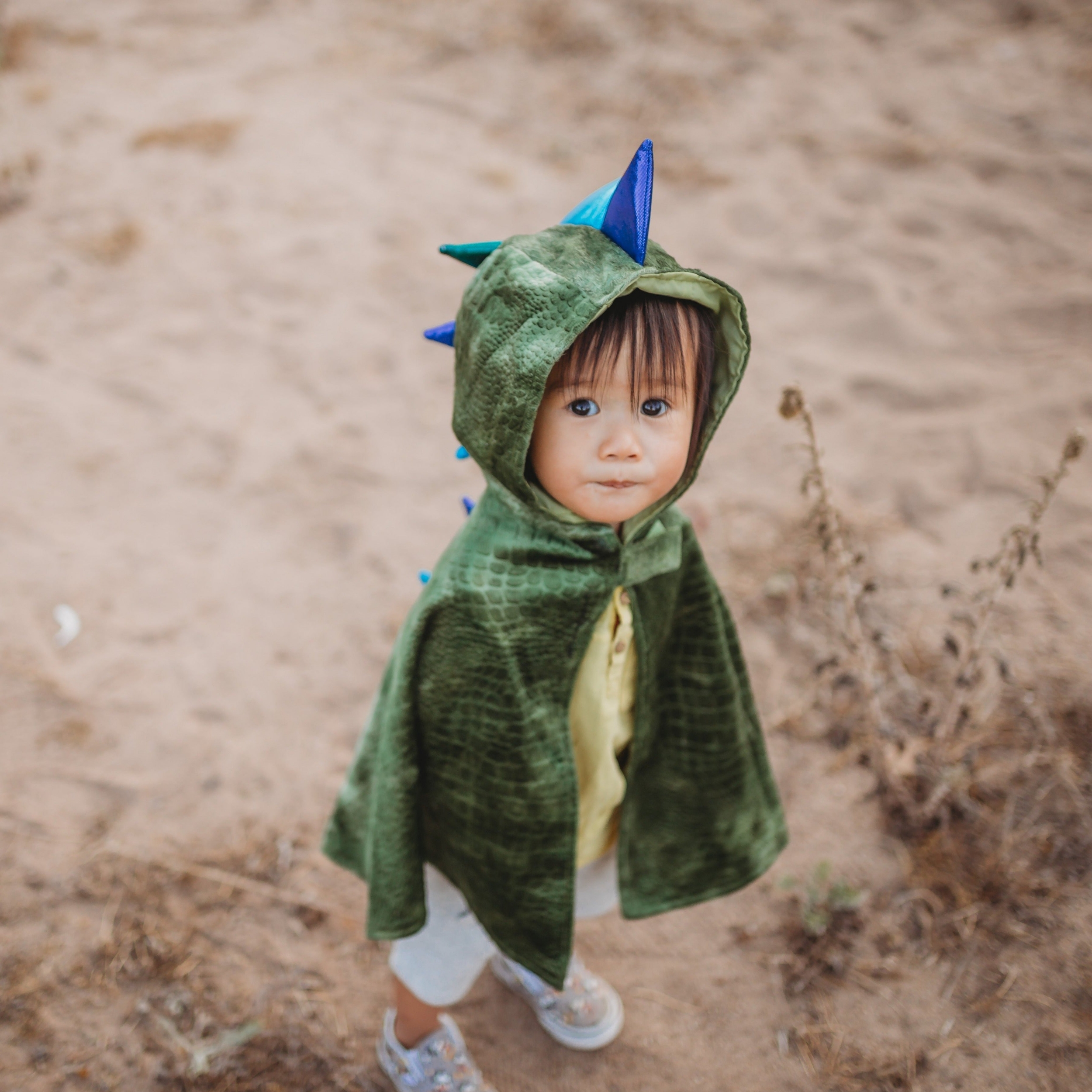 Cette cape, de la marque canadienne Great Pretenders, en velours avec plusieurs tons de vert est idéale pour un look parfait de dragon. Le tissu est même conçu avec des écailles et les pointes doublées de mousse tiennent droite. Ultra pratique de surcroît grâce à la fermeture en velcro qui permet de l'enfiler et de la retirer en un clin d'œil.