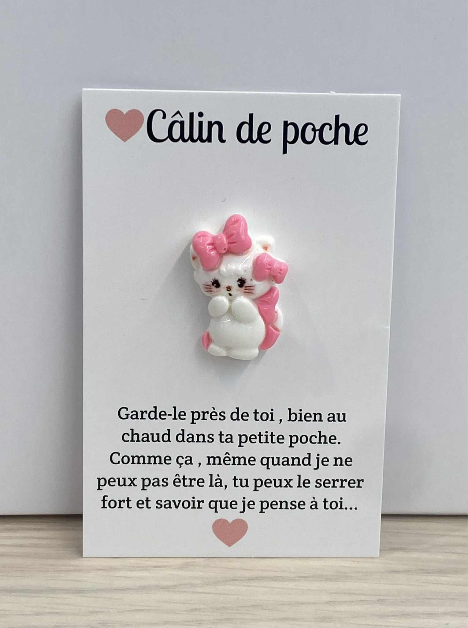 Plus qu'une simple carte, le Câlin de Poche est un souvenir précieux et durable que le destinataire pourra emporter partout avec lui. Les Câlins de Poche sont conçus pour véhiculer des sentiments sincères, qu'il s'agisse d'amour, d'encouragement ou de vœux de bonheur. Chaque carte est un rappel de positivité.