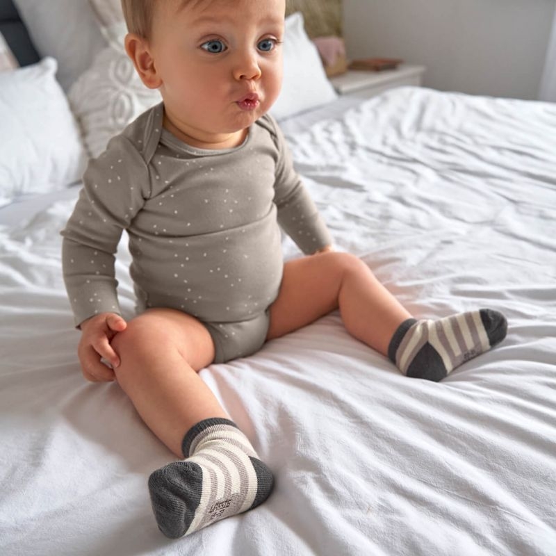 Les bords élastiques permettent de les enfiler et de les ajuster facilement. La couture plate au niveau des orteils les rend agréable à porter. Le coton bio avec lequel elles sont fabriquées est de plus certifíé par GOTS