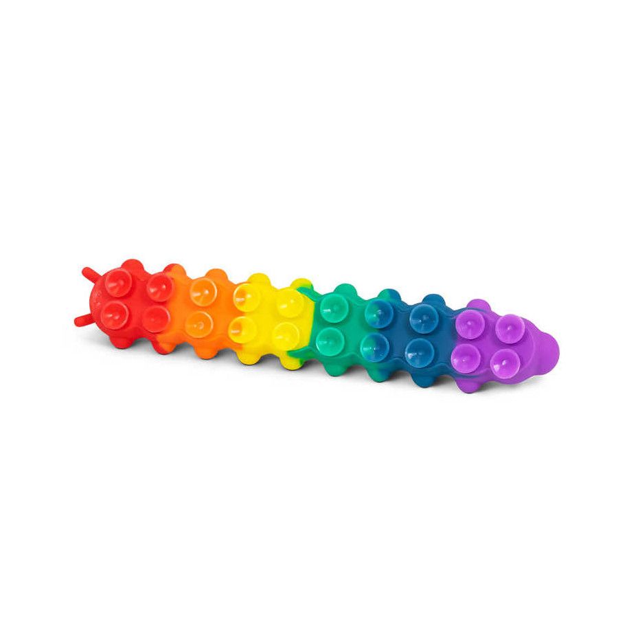 Un concentré de plaisir sensoriel ! Cette chenille aux couleurs de l'arc-en-ciel renferme une bille lumineuse qui s'active lorsqu'on la touche. Son dessous est recouvert de ventouses, ce qui lui permet d'adhérer à une table, un bureau ou un mur. Mais ce n'est pas tout ! Son corps est également parsemé de petites alvéoles à presser pour stimuler les sens.