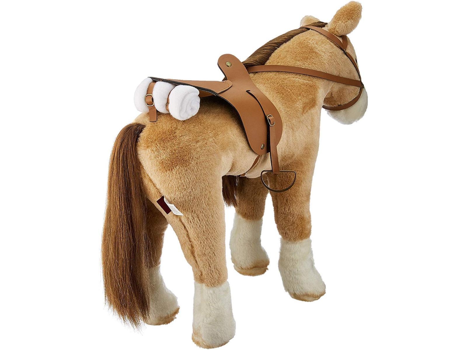 Il est livré avec une brosse, une selle, des étriers, un filet et même la couverture pour le pique-nique, pour s'amuser autour du thème l'équitation.