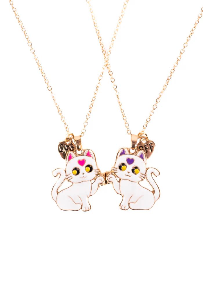 Nos colliers « Chatons Amoureux » se composent de deux pendentifs chatons blancs, chacun orné de touches roses ou violettes. Une fois réunis, les chatons semblent se tenir la main, un charmant symbole d'amitié et de complicité. Légers et confortables à porter au quotidien, ces colliers sont parfaits à partager avec votre meilleur(e) ami(e) ou votre frère/sœur.