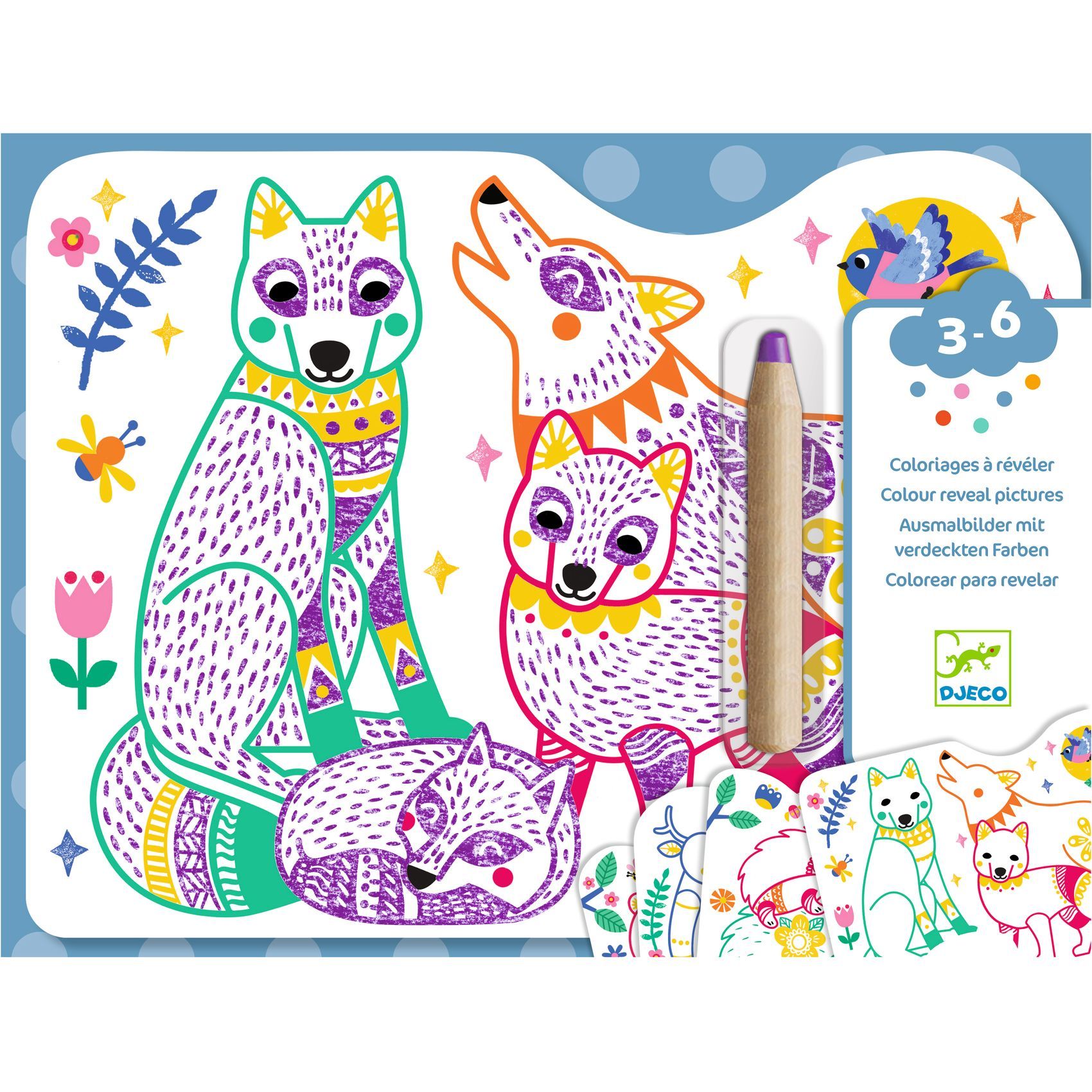 L'enfant colorie les animaux à l'aide du crayon pour découvrir ce qui se cache. C'est magique : le crayon ne marque que sur certaines zones, des motifs apparaissent et révèlent des surprises !