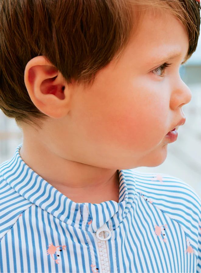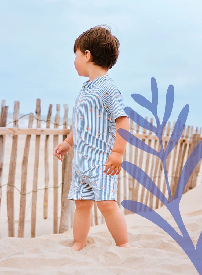 La combinaison anti-UV permet de profiter du plaisir de la baignade en toute sécurité grâce à son indice de protection UV de 50. Votre enfant aura fière allure dans ce joli maillot équipé d'une tirette.