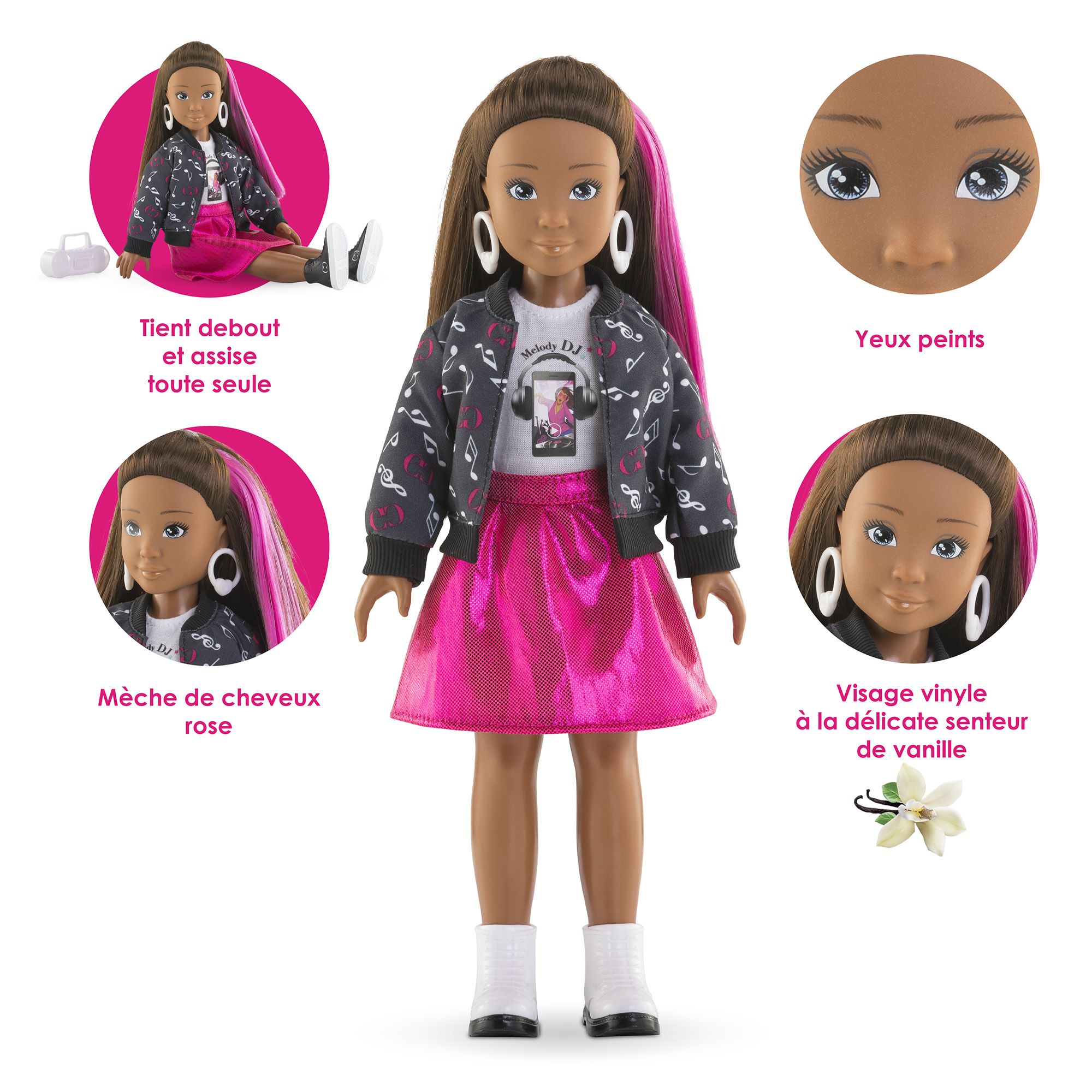 Melody est une jolie poupée mannequin de 28 cm au visage naturel qui sent bon la vanille. Ses yeux bleus sont peints et elle a de longs cheveux bruns lumineux avec une jolie mèche rose.