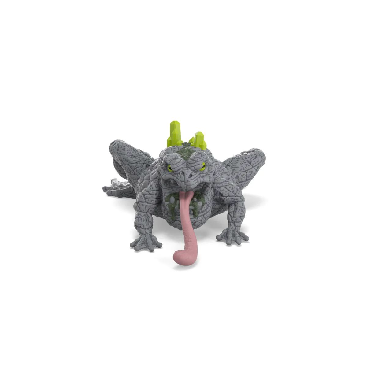 Ne t'avise surtout pas de sous-estimer le Crapaud de pierre. Il n'est certes pas aussi grand que les autres créatures d'ELDRADOR®, mais il est deux fois plus méchant. Dans le monde des pierres, il se tapit sans bouger entre les rochers. Avec sa peau grise de lézard, il s'y camoufle parfaitement et est à peine visible pour les inexpérimentés. Si l'on s'approche trop de lui par mégarde, il sort subitement sa longue langue collante. Sa langue est son arme la plus dangereuse. Il s'en sert pour emprisonner ses adversaires et les empêcher de s'enfuir. Ouvre donc bien les yeux si tu te retrouves dans le monde des pierres !