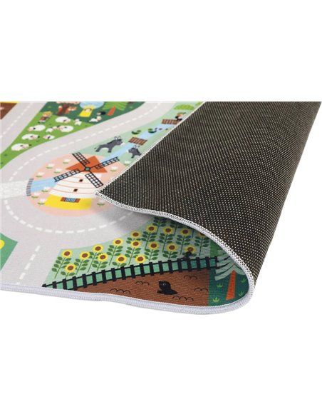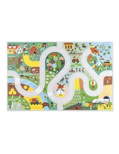 Parcourir les routes de la campagne, c'est imaginer de nombreuses histoires à la ferme, dans la forêt ou même au centre équestre. C'est arroser le potager, aider le berger à garder ses moutons, ou encore dormir en tente. Ce tapis, idéal pour stimuler l'imagination de votre enfant, propose également un jeu de cherche et trouve géant. Il permet donc aussi de développer le sens de l'observation, l'interaction et le vocabulaire autour des animaux et de leurs petits, des chiffres et des couleurs.