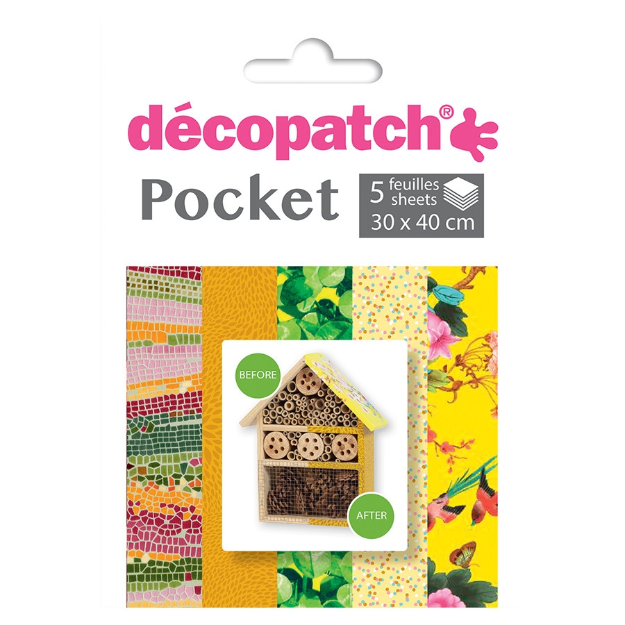 Décopatch a créé pour vous 12 collections de papiers assortis. Chaque pochette renferme 5 feuilles Décopatch