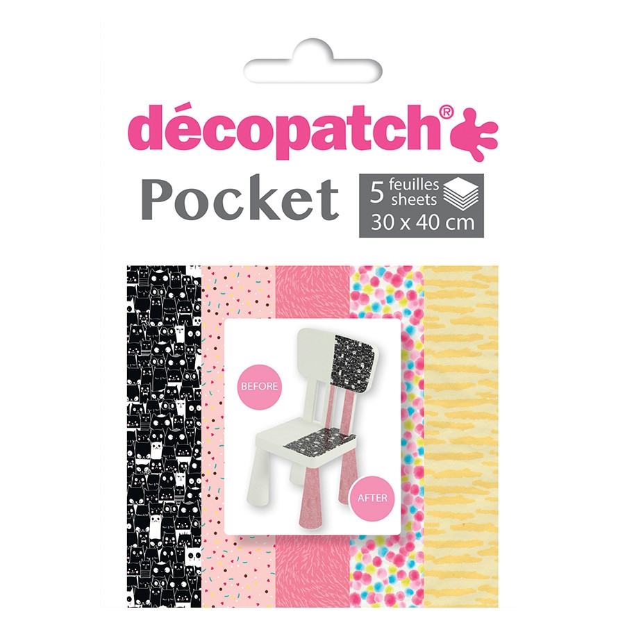 Décopatch a créé pour vous 12 collections de papiers assortis. Chaque pochette renferme 5 feuilles Décopatch