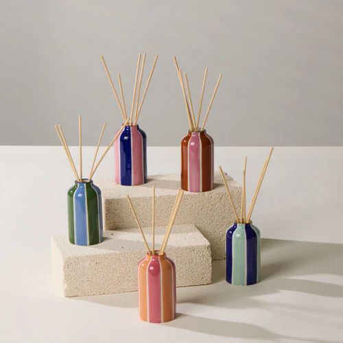 Le diffuseur vanille et bois de rose de chez Paddywax allie un design décoratif à un parfum ensoleillé. Son flacon en céramique, aux dégradés bleu et rose, diffuse délicatement un parfum floral doux et apaisant, idéal pour créer une ambiance lumineuse et chaleureuse dans votre intérieur.