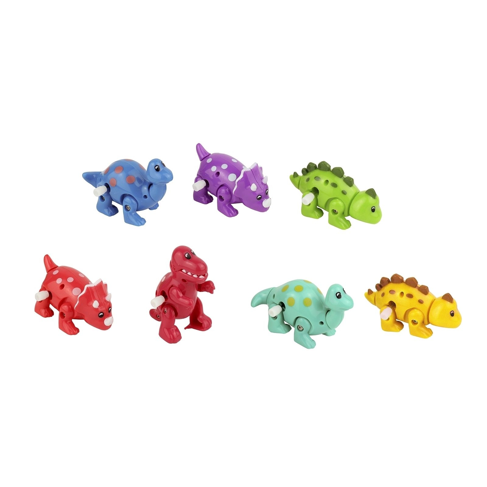 Petit jouet à remonter. Assortiment de dinosaures : orange, mauve, bleu, vert. Modèle et coloris aléatoire en fonction du stock !