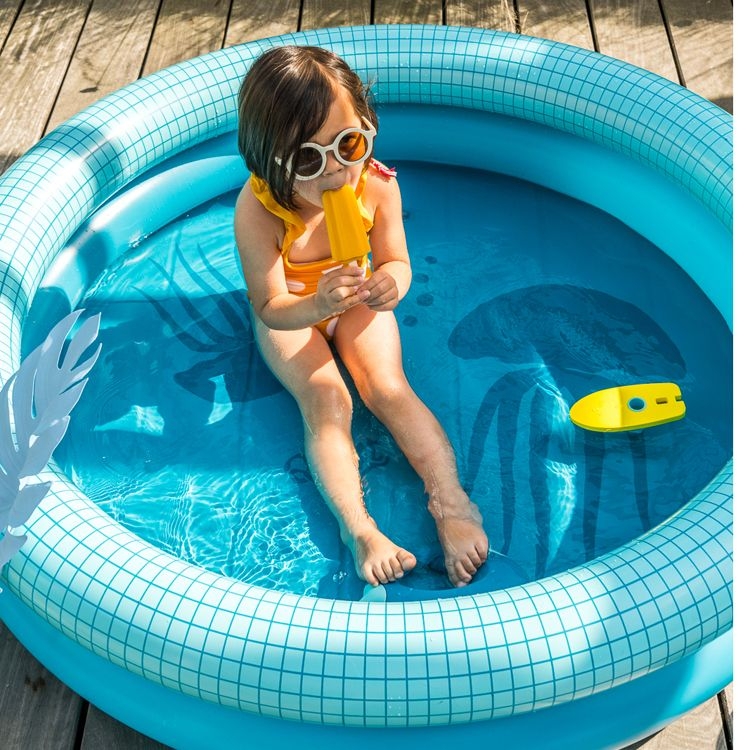 La grande piscine gonflable Dippy de la marque belge Quut est une solution pratique qui permet aux plus petits de se rafraîchir et de s'amuser dans l'eau en toute sécurité dans le jardin ou sur la terrasse.