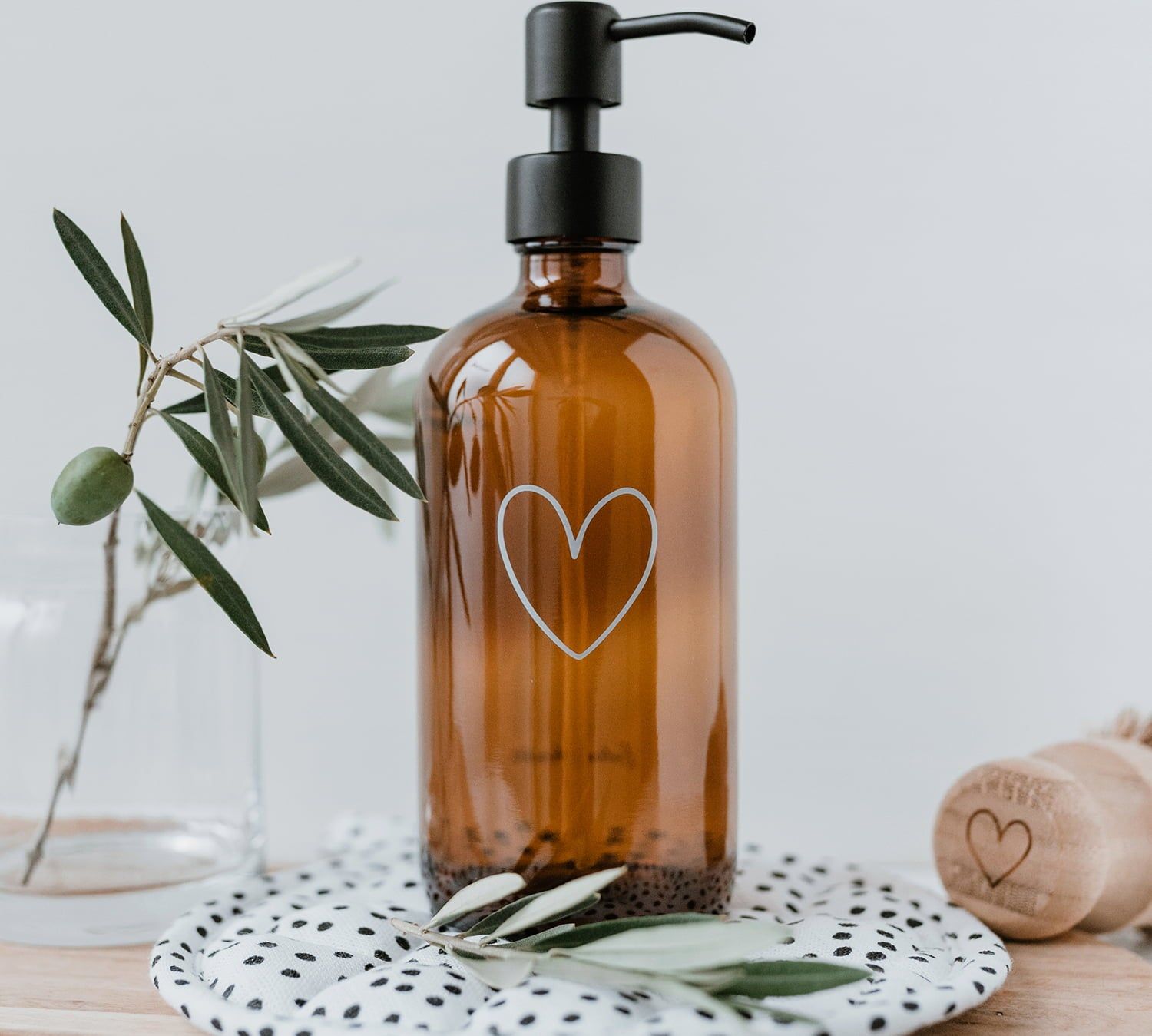 Le verre brun noble avec impression blanche fait du distributeur de savon un véritable accroche-regard. Un petit cœur peint à la main orne le devant, tandis que l'inscription Eulenschnitt décore l'arrière – un détail élégant pour chaque maison. La bouteille en verre rechargeable contient 250 ml et est livrée avec une pompe noire ainsi qu'un bouchon à vis noir pour le transport.