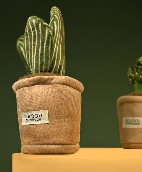 Doudou Botanique - Peluche plante verte rayures jaunes