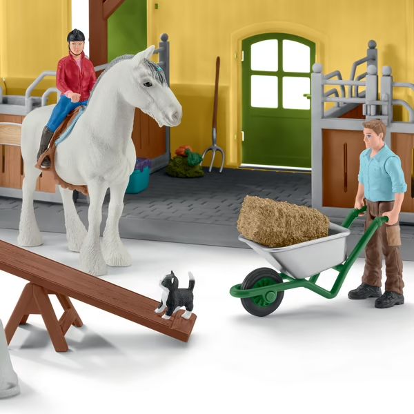 Avec 7 adorables animaux, 2 box pour chevaux, les fermiers Paul et Laura et de nombreux accessoires, il n'y a rien de plus facile que de reproduire une journée typique de la ferme.