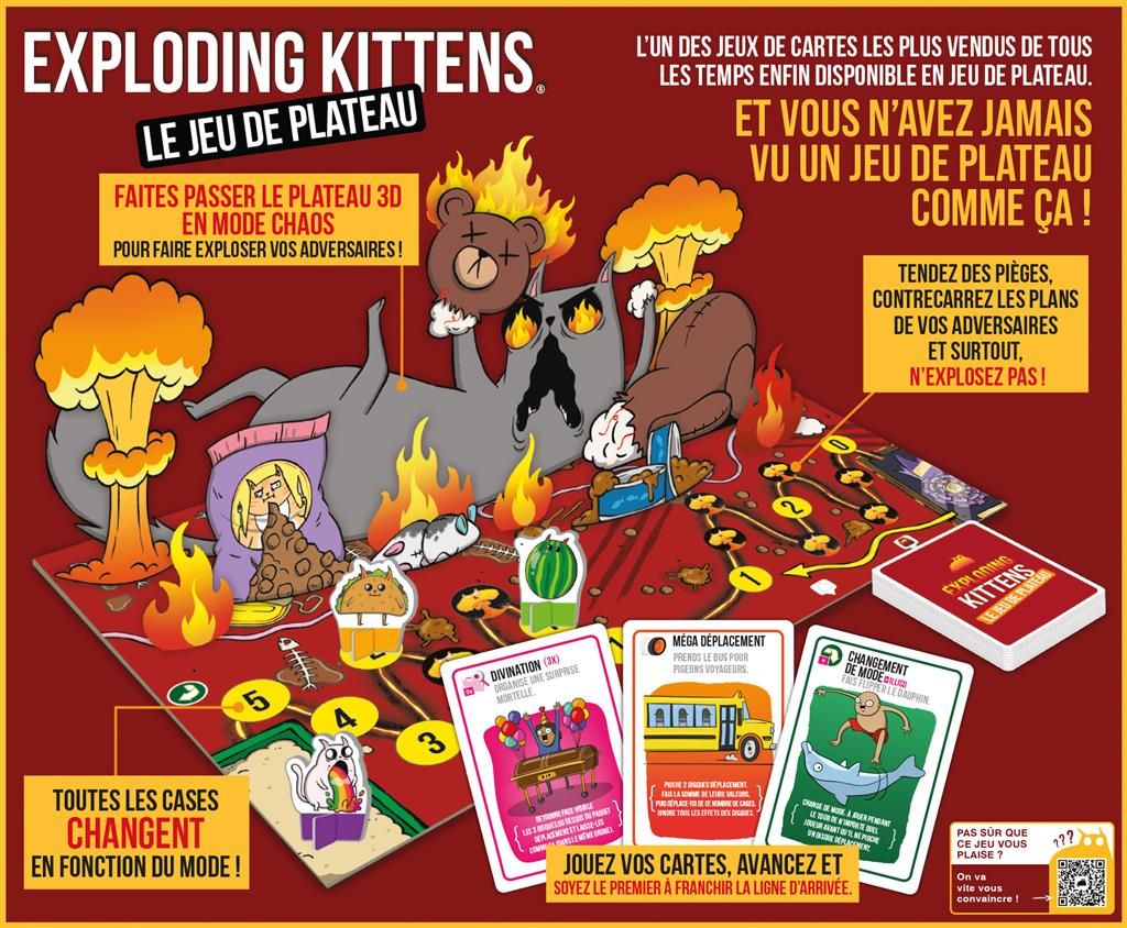 L'univers d'Exploding Kittens s'agrandit avec le jeu de société — une aventure explosive et déjantée dans laquelle vous courez, sautez, tournez et sabotez jusqu'à épuisement (ou explosion, bien sûr). Choisissez votre personnage, prenez vos cartes d'action et essayez d'être le premier à atteindre la ligne d'arrivée. Facile, non ? Eh bien... pas vraiment.