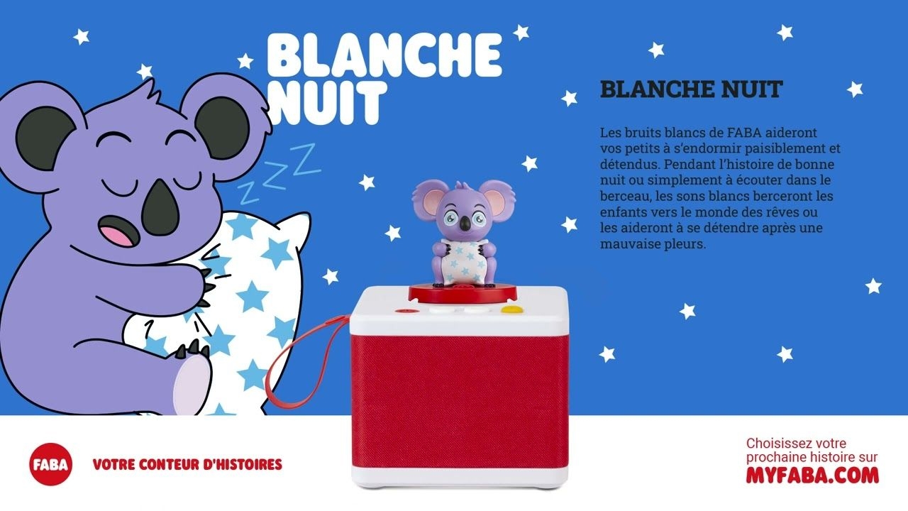 Les bruits blancs de FABA aideront vos petits à s'endormir paisiblement et détendus.