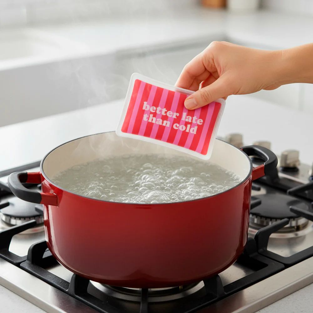 Un petit coup de froid ? Ce chauffe-mains orné du message « mieux vaut tard que froid », vous rappelle que la vraie chaleur vient de l'intérieur.