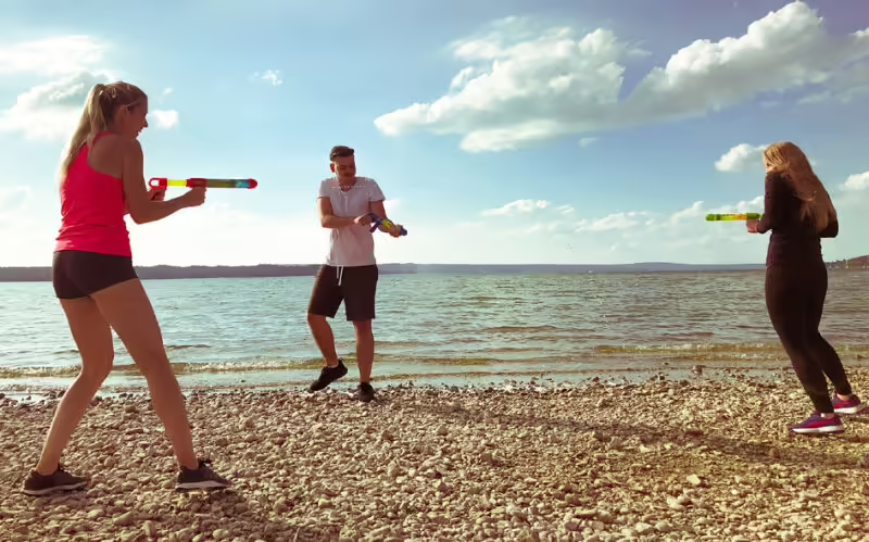 Fusil à eau d'une capacité de 300 ml qui projette l'eau jusqu'à 8 mètres.